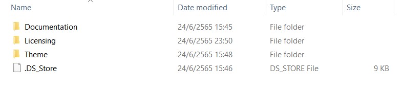 2. หลังจากได้ไฟล์ zip มาแล้วให้แตกไฟล์ แล้วเข้าไปดูใน folder เรื่อยๆ จนเจอไฟล์ zip ที่เป็นชื่อ theme