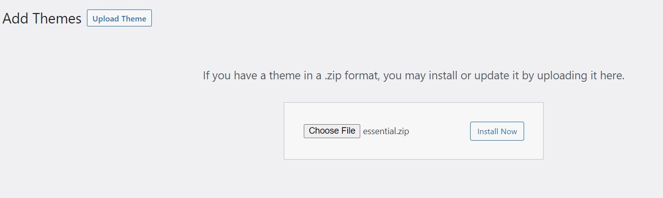 4. คลิก "Upload Theme" จากนั้นให้เลือกไฟล์ zip จากข้อ 2 แล้วคลิก "Install Now"