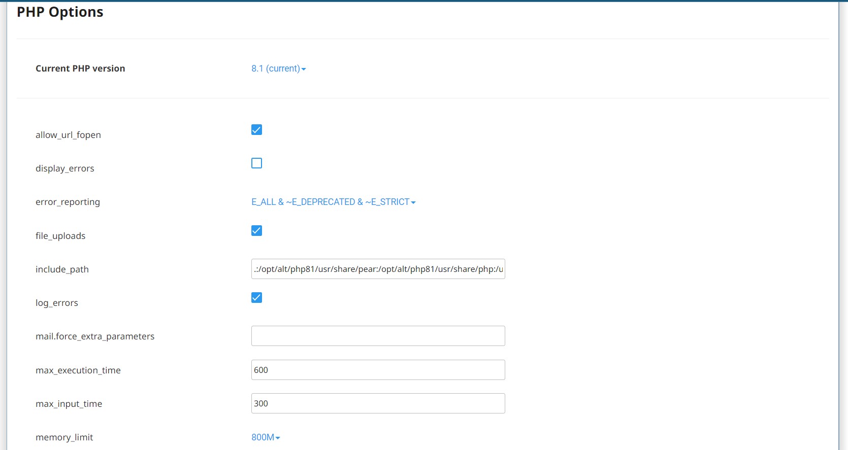 4. หากกดไปที่ tab "Options" ลูกค้าสามารถปรับ PHP Options ได้ตามภาพ ในหน้านี้แนะนำว่าหากไม่แน่ใจอย่าไปตั้งค่ามั่วๆ ไม่งั้นเว็บอาจจะมีปัญหาในการใช้งานได้