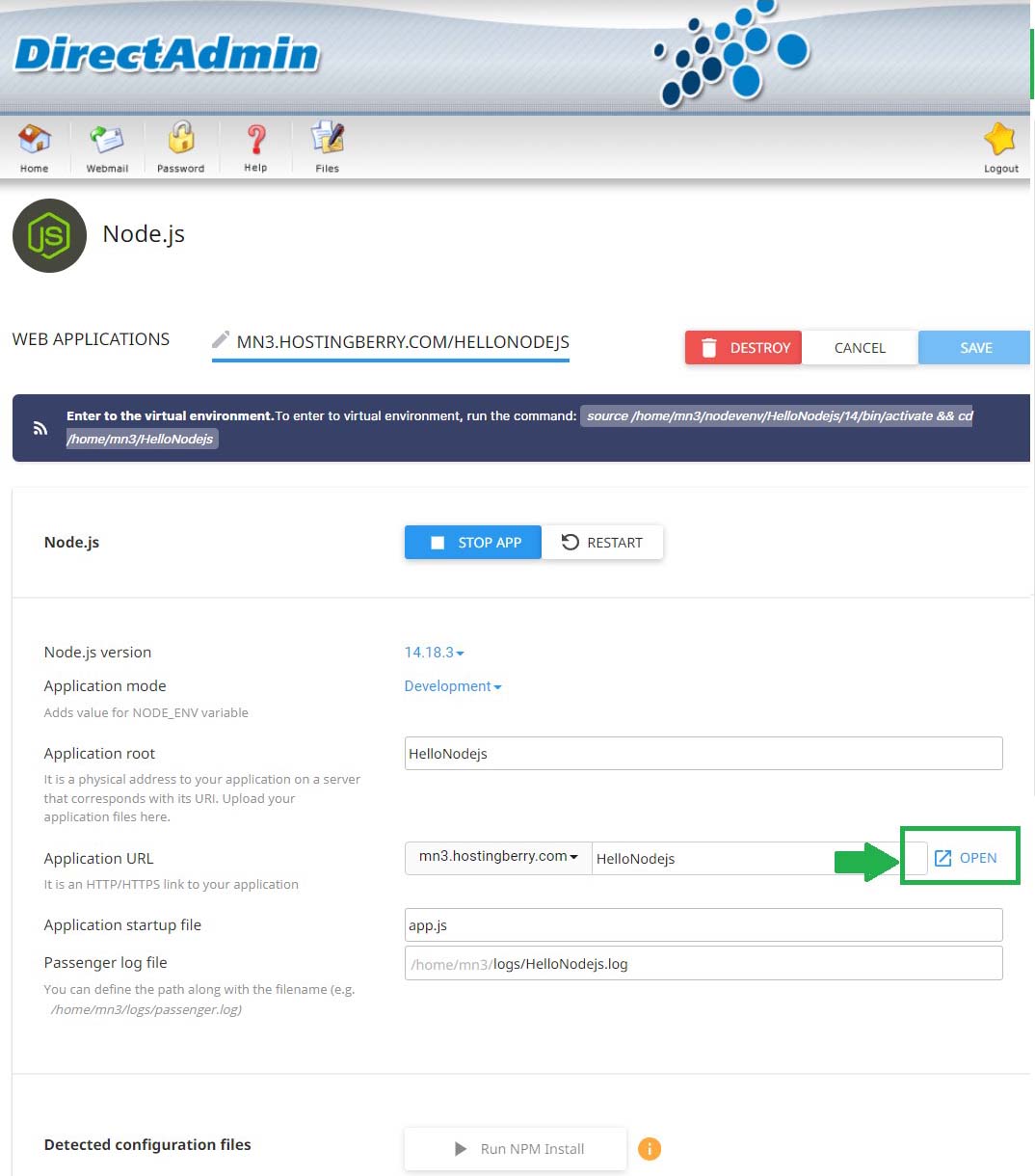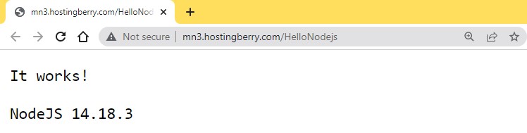ระบบจะเปิดบราวเซอร์ตาม Application URL ซึ่งจากตัวอย่างนี้คือ http://mn3.hostingberry.com/HelloNodejs