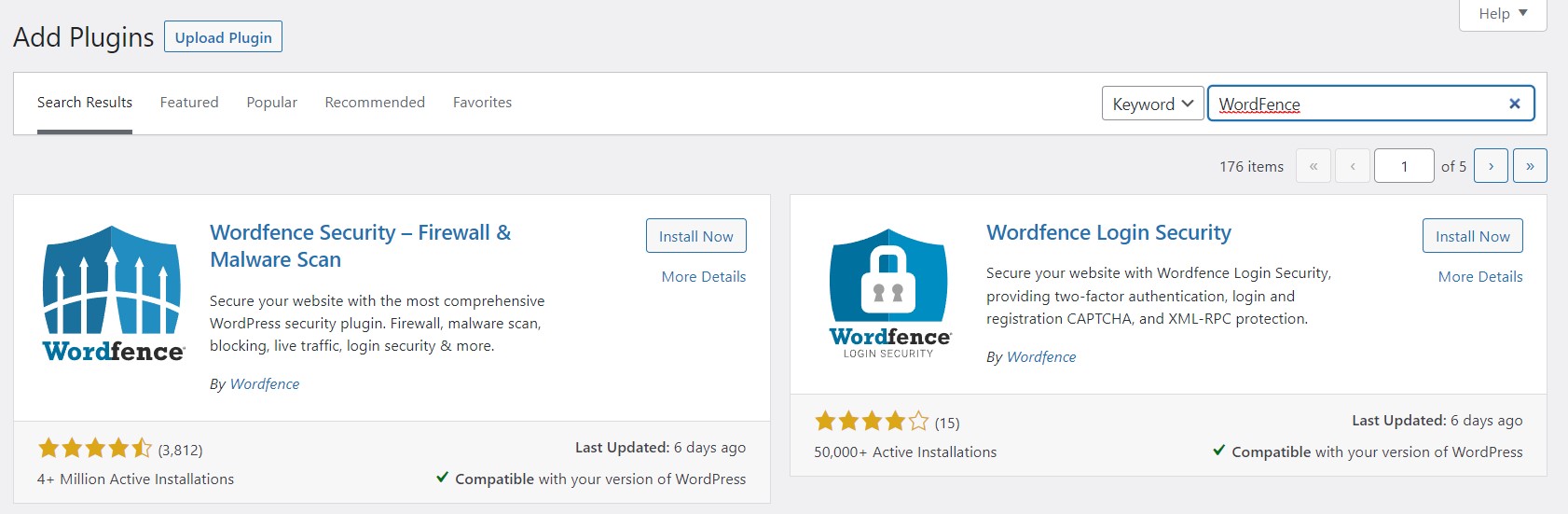 2. ค้นหา Wordfence จากนั้นกด "Install Now"