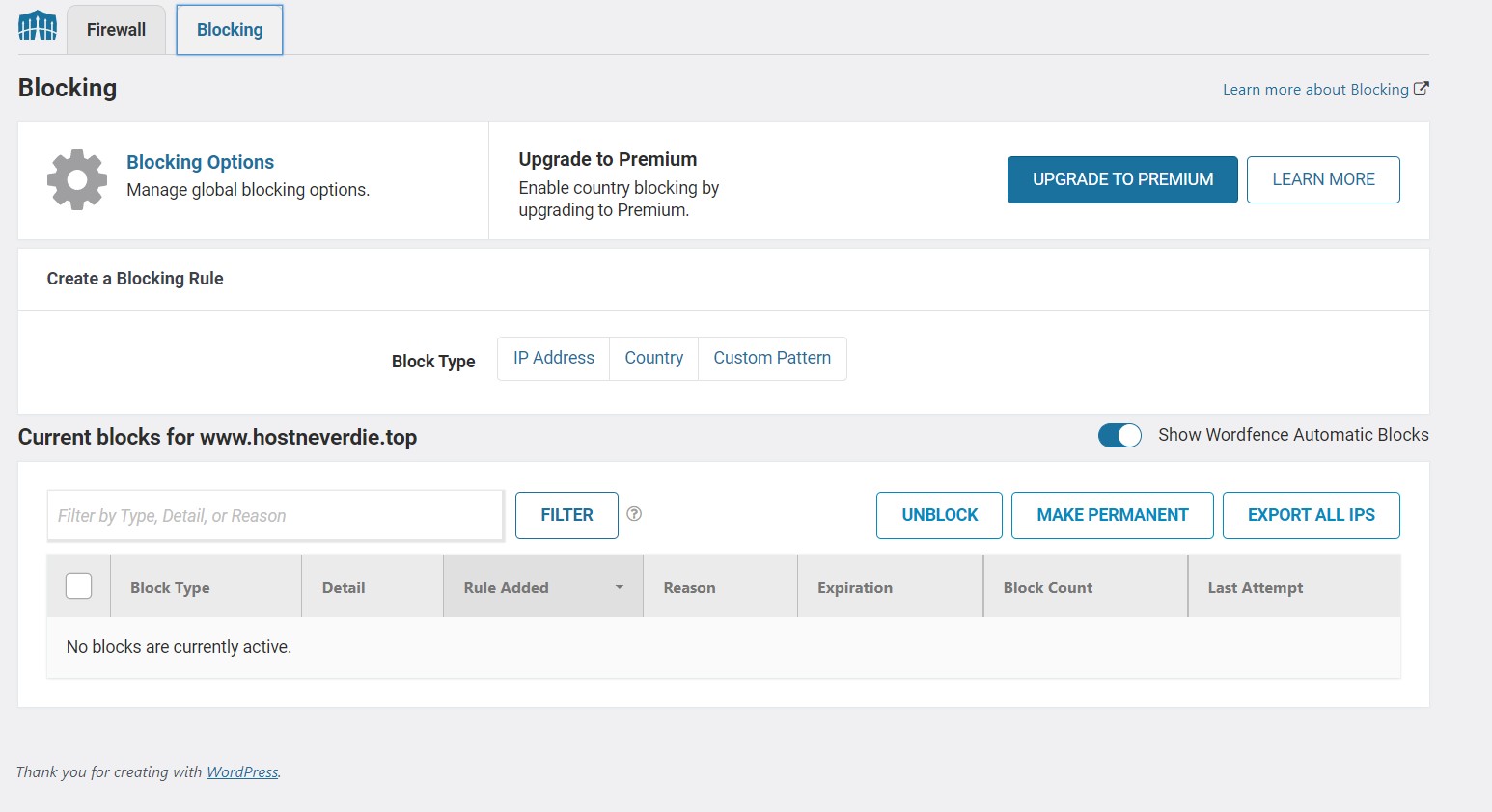 ลูกค้าสามารถตั้ง Rule ในการบล๊อกได้โดยไปที่เมนู "Blocking"