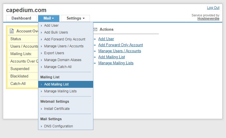 4. เลือกเมนู “Mail” และเลือก “Add Mailing List”