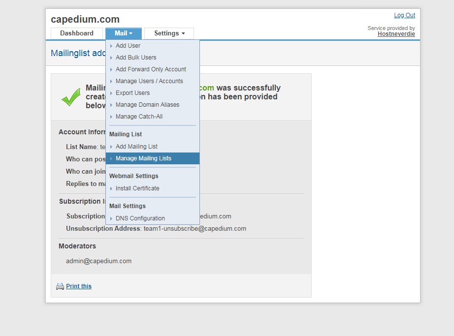 โดยเลือกที่เมนู Mail > Manage Mailing List